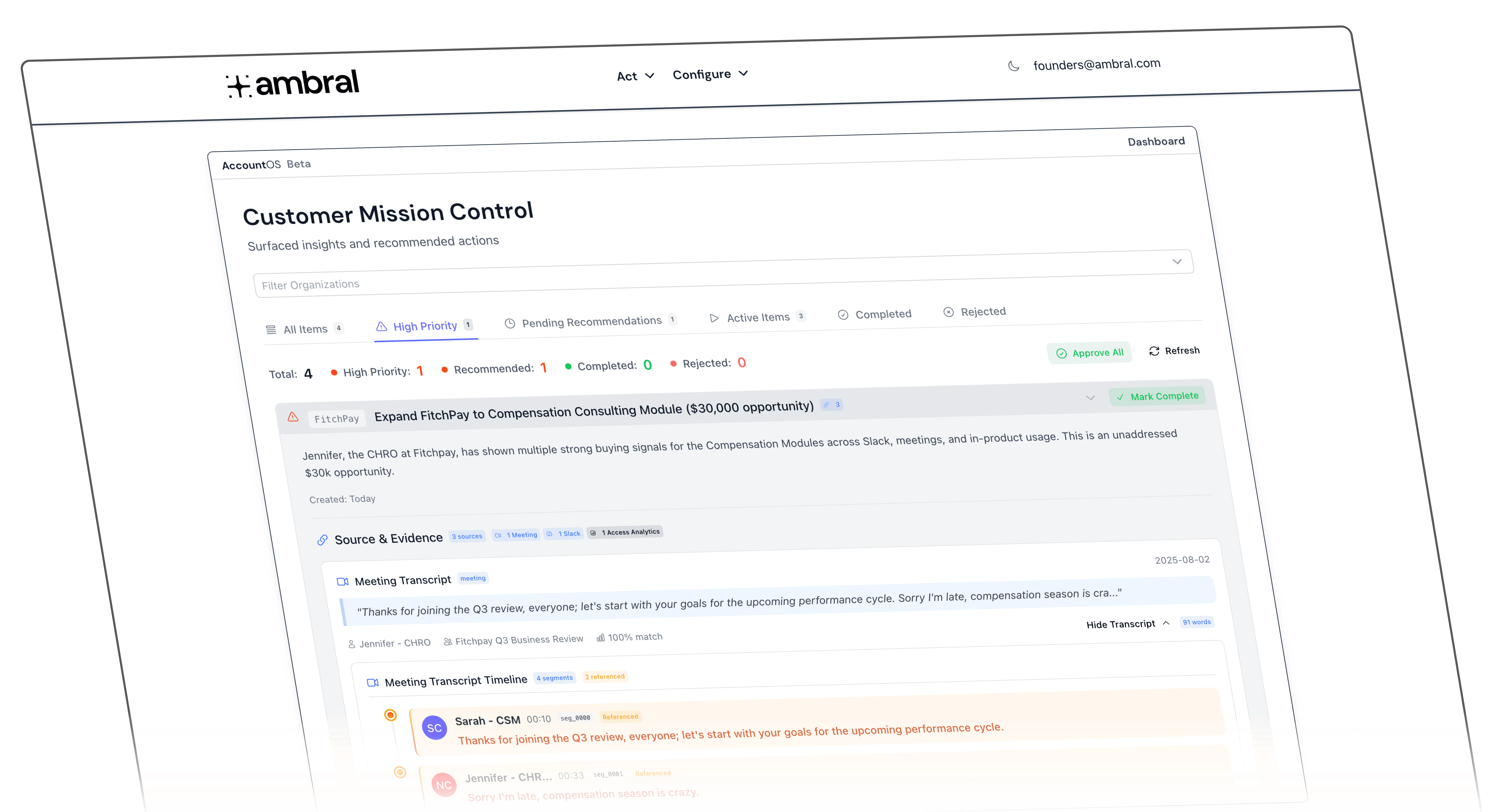 Our AI Account Managers scale your coverage with personalized, timely actions to achieve your revenue goals.